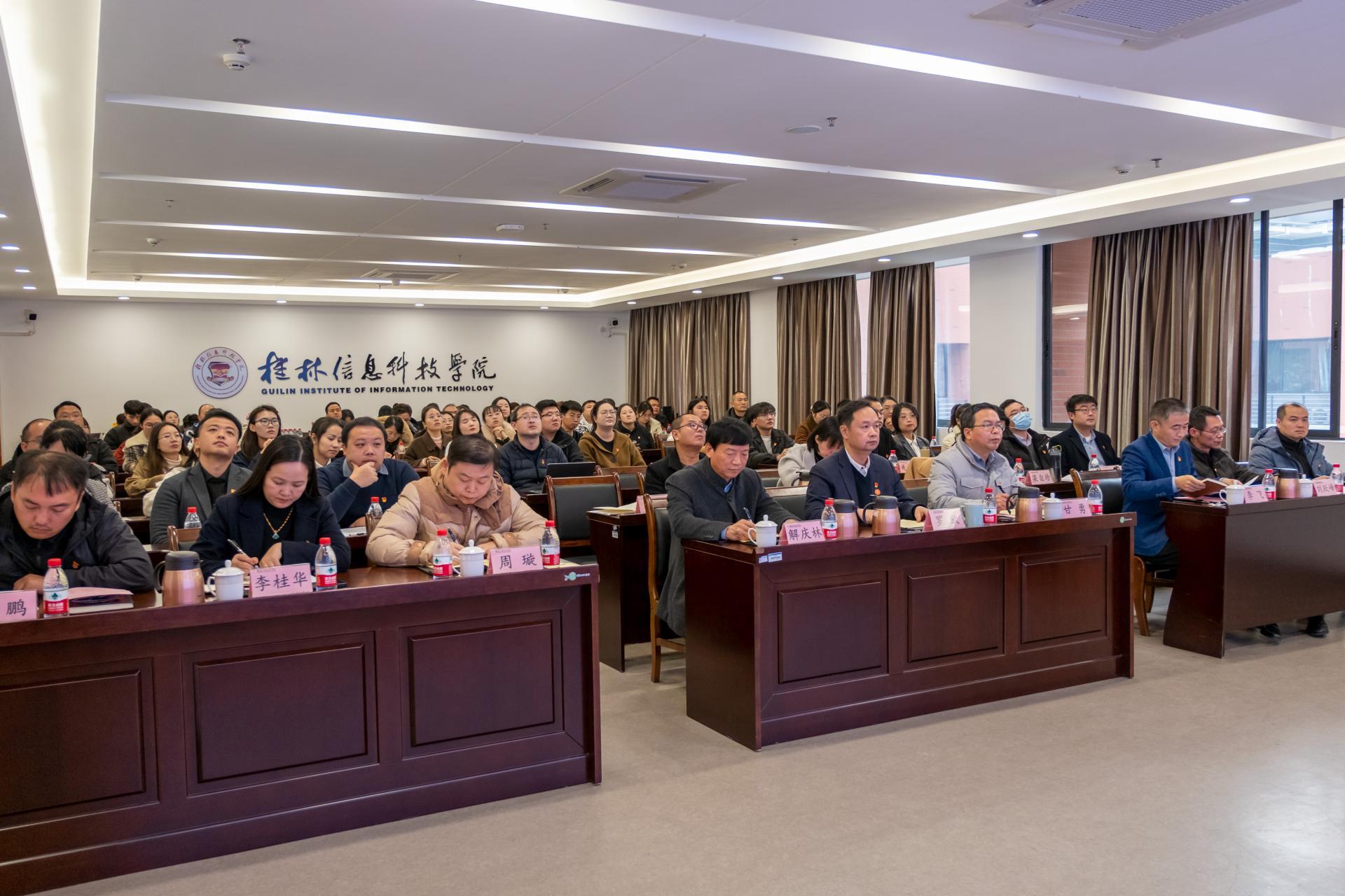2024年12月31日上午,我校召开2024年度二级党组织书记抓基层党建述职大会。学校董事长罗欣同志出席担任评委,学校党委书记甘勇同志出席并作大会点评。学校党委委员、纪委委员、党员校领导担任评委,各二级党组织班子成员、党支部书记和组织员参加会议。大会由学校党委副书记李飞同志主持会议。