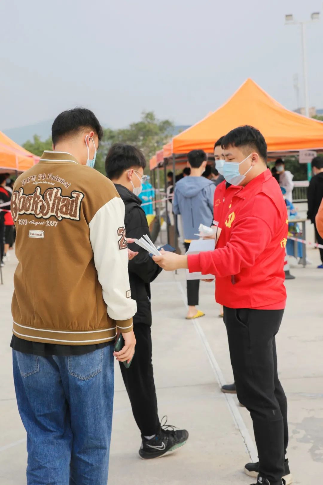 当前,桂林疫情形势逐渐严峻,11月19日起,学校井然有序组织全体师生核酸检测在各个学生居住点、五号教学楼广场、篮球场等就近设置核酸检测点学工系统、保卫处、后勤部门志愿者冲锋在前,守好疫情防控“第一线”。