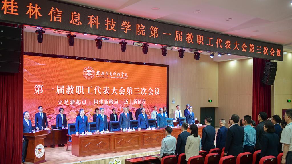 9时50分,学校召开大会开幕会暨第一次全体会议。在雄壮激昂的国歌声中,大会秘书长唐步洲宣布大会开幕。校长梁丁丁代表学校作题为“立足新起点 构建新格局 迈上新征程 为建设电子信息特色鲜明的高水平应用型大学而努力奋斗”的工作报告。