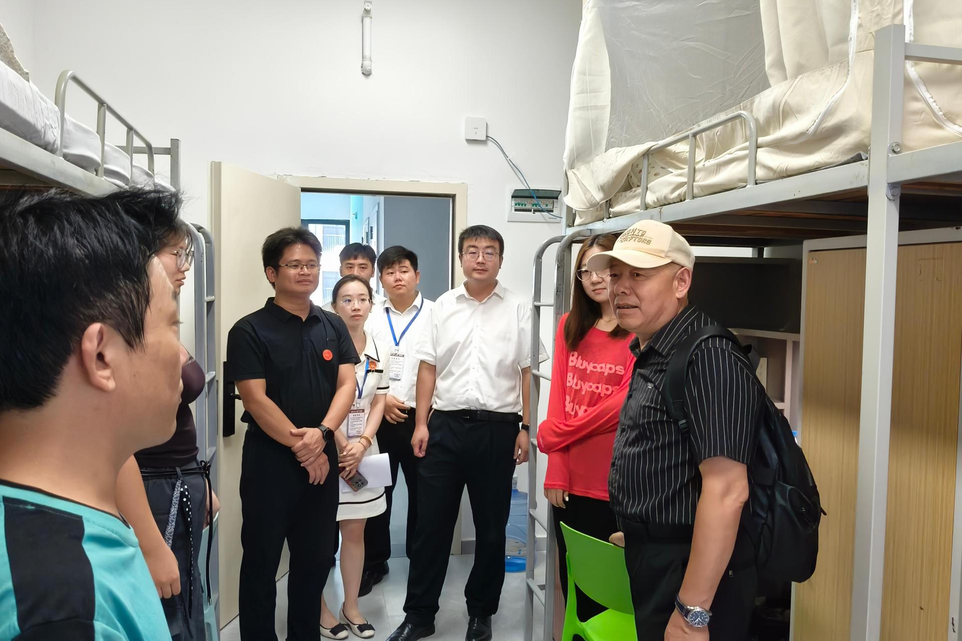 走进新生宿舍,领导班子成员与新生及家长亲切交谈,同时耐心倾听大家的需求与困惑。院长王家年细致询问新生们的住宿适应情况、行李物品是否齐全、饮食是否习惯等生活问题,并表示遇到困难要及时与辅导员沟通;学院党委书记李刚则着重强调了集体生活中的团结互助,提醒新生们注意宿舍用电安全与个人财物保管;副院长赖安与学工办主任杨锦超引导师生驻足“至善之星” 荣誉墙前,介绍该板块定期围绕志愿服务、学业帮扶、社区服务等方向,以光荣榜的形式传递正向力量。辅导员们也全程陪同,记录新生需求,为后续精准服务做好准备。