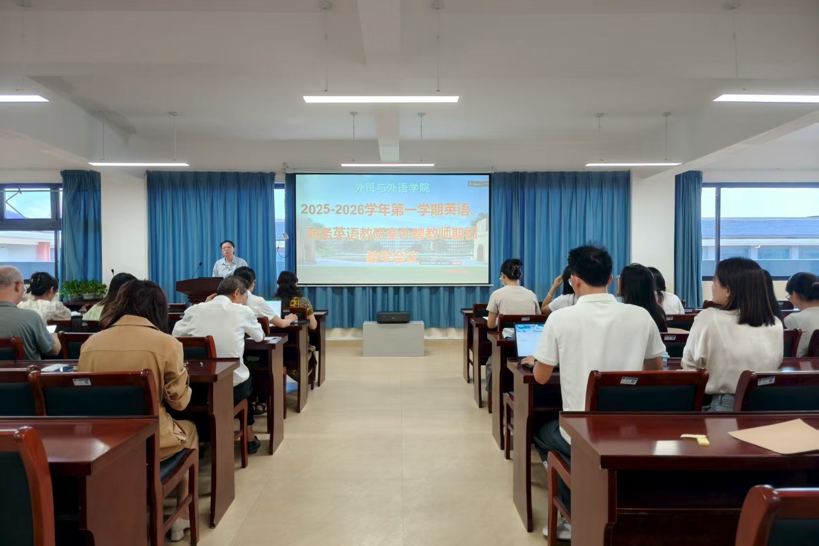 8月27日上午,外贸与外语学院在L702会议室召开2025-2026学年第一学期英语、商务英语教研室外聘教师期初教学会议,会议由英语专业教研室副主任谢彩华老师主持,英语、商务英语专业教研室全体人员以及教研室外聘和返聘教师参与。