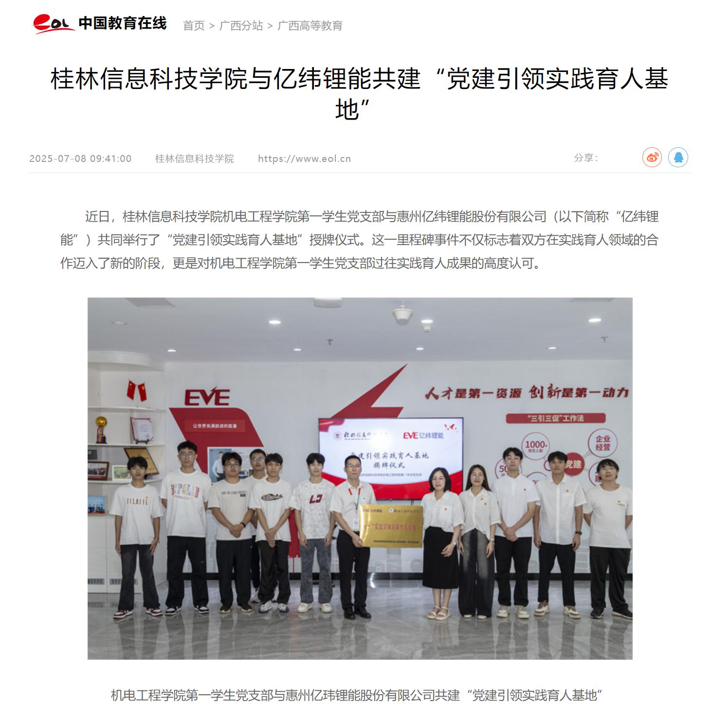 中国教育在线链接:与亿纬锂能共建“党建引领实践育人基地”